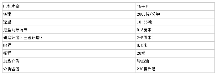 高速剪切均化磨技術參數(20T/小時)